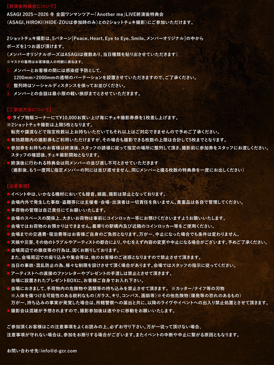 ※ASAGI、HIROKI 終演後特典会有り。